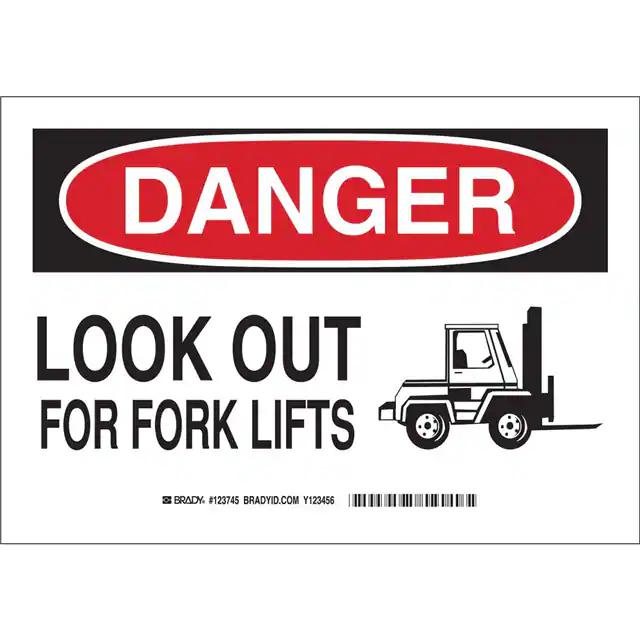 This is manufactured by Brady Corporation. The manufacturer part number is 123744. Label with a size of 10.00" l x 7.00" w (254.0mm x 177.8mm). The product is rohs3 compliant. It is assigned with possible HTSUS value of 3926.90.9985. It is shipped in bulk. It has a classic black and red legend, white background colour. The product brady®, is a highly preferred choice for users. The product is made from highly stable and reliable polyester. In addition, it is reach unaffected. Its typical moisture sensitivity level is not applicable. A bespoke label is a danger. look out for fork lifts label. The product is suitable for use with danger. It has a long 4 weeks standard lead time. The product is designated with the ear99 code number