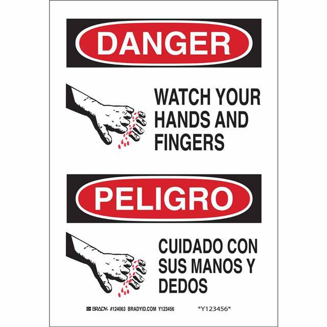 This is manufactured by Brady Corporation. The manufacturer part number is 124066. Label with a size of 14.00" l x 10.00" w (355.6mm x 254.0mm). The product is rohs3 compliant. It is assigned with possible HTSUS value of 3926.90.9985. It is shipped in bulk. It has a classic black and red legend, white background colour. The product brady®, is a highly preferred choice for users. The product is made from highly stable and reliable polyester. In addition, it is reach unaffected. Its typical moisture sensitivity level is not applicable. A bespoke label is a watch your hands and fingers. cuidado coin sus manos y dedos label. The product is suitable for use with warning. It has a long 4 weeks standard lead time. The product is designated with the ear99 code number