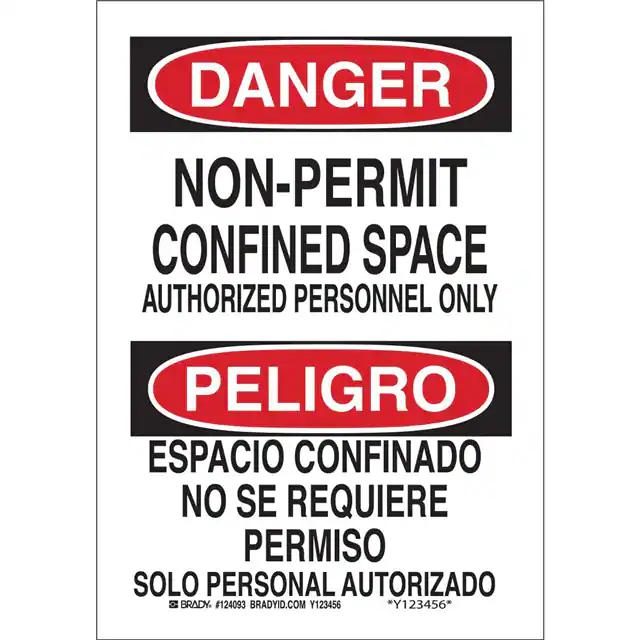 This is manufactured by Brady Corporation. The manufacturer part number is 124096. Label with a size of 14.00" l x 10.00" w (355.6mm x 254.0mm). The product is rohs3 compliant. It is assigned with possible HTSUS value of 3926.90.9985. It is shipped in bulk. It has a classic black and red legend, white background colour. The product brady®, is a highly preferred choice for users. The product is made from highly stable and reliable polyester. In addition, it is reach unaffected. Its typical moisture sensitivity level is not applicable. A bespoke label is a danger/peligro. non-permit confined space authorized personnel only/espacio confinado no se requiere permiso label. The product is suitable for use with danger. It has a long 4 weeks standard lead time. The product is designated with the ear99 code number