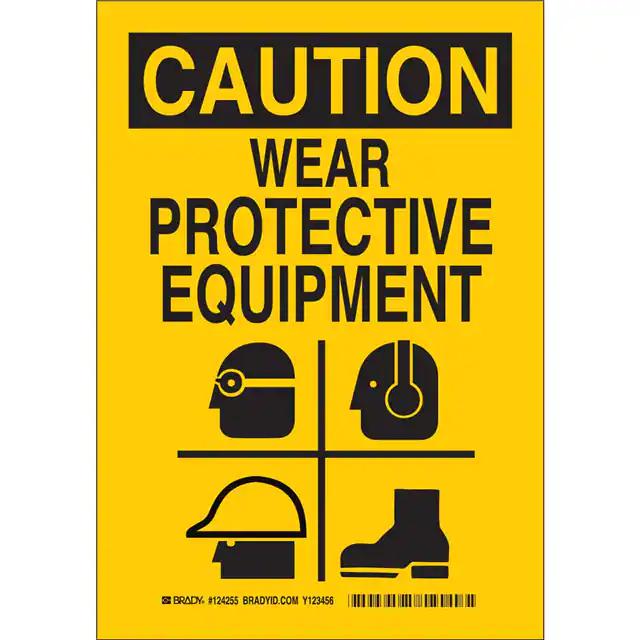 This is manufactured by Brady Corporation. The manufacturer part number is 124258. Label with a size of 14.00" l x 10.00" w (355.6mm x 254.0mm). The product is not applicable. It is assigned with possible HTSUS value of 3926.90.9985. It is shipped in bulk. It has a classic black legend, yellow background colour. The product brady®, is a highly preferred choice for users. The product is made from highly stable and reliable polyester. In addition, it is reach unaffected. Its typical moisture sensitivity level is not applicable. A bespoke label is a caution. wear protective equipment label. The product is suitable for use with caution. It has a long 4 weeks standard lead time. The product is designated with the ear99 code number