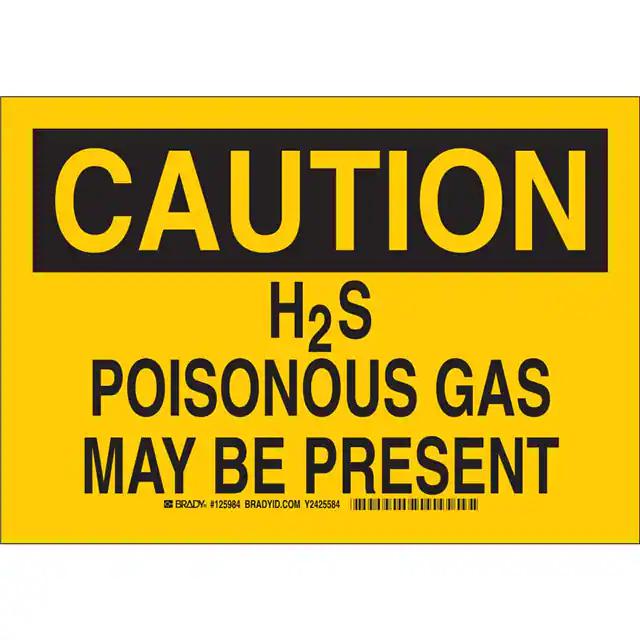 This is manufactured by Brady Corporation. The manufacturer part number is 124281. Label with a size of 10.00" l x 7.00" w (254.0mm x 177.8mm). The product is rohs3 compliant. It is assigned with possible HTSUS value of 3926.90.9985. It is shipped in bulk. It has a classic black legend, yellow background colour. The product brady®, is a highly preferred choice for users. The product is made from highly stable and reliable polyester. In addition, it is reach unaffected. Its typical moisture sensitivity level is not applicable. A bespoke label is a caution. h2s poisonous gas may be present label. It has a long 4 weeks standard lead time. The product is designated with the ear99 code number