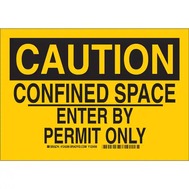 This is manufactured by Brady Corporation. The manufacturer part number is 124290. Label with a size of 14.00" l x 10.00" w (355.6mm x 254.0mm). The product is rohs3 compliant. It is assigned with possible HTSUS value of 3926.90.9985. It is shipped in bulk. It has a classic black legend, yellow background colour. The product brady®, is a highly preferred choice for users. The product is made from highly stable and reliable polyester. In addition, it is reach unaffected. Its typical moisture sensitivity level is not applicable. A bespoke label is a caution. confined space enter by permit only label. The product is suitable for use with caution. It has a long 4 weeks standard lead time. The product is designated with the ear99 code number