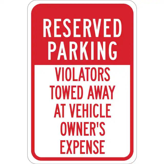 This is manufactured by Brady Corporation. The manufacturer part number is 124385. Label with a size of 18.00" l x 12.00" w (457.2mm x 304.8mm). The product is not applicable. It is assigned with possible HTSUS value of 3926.90.9985. It is shipped in bulk. It has a classic red legend, white background colour. The product brady®, is a highly preferred choice for users. The product is made from highly stable and reliable polyester. In addition, it is reach unaffected. Its typical moisture sensitivity level is not applicable. A bespoke label is a reservedparking. violators towed away at vehicle owner's expense label. The product is suitable for use with lockout. It has a long 4 weeks standard lead time. The product is designated with the ear99 code number