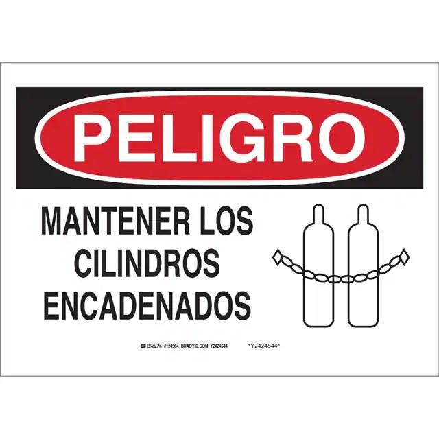 This is manufactured by Brady Corporation. The manufacturer part number is 124963. Label with a size of 14.00" l x 10.00" w (355.6mm x 254.0mm). The product is rohs3 compliant. It is assigned with possible HTSUS value of 3926.90.9985. It is shipped in bulk. It has a classic black and red legend, white background colour. The product brady®, is a highly preferred choice for users. The product is made from highly stable and reliable polyester. In addition, it is reach unaffected. Its typical moisture sensitivity level is not applicable. A bespoke label is a mantener los cilindros encadenados label. It has a long 4 weeks standard lead time. The product is designated with the ear99 code number