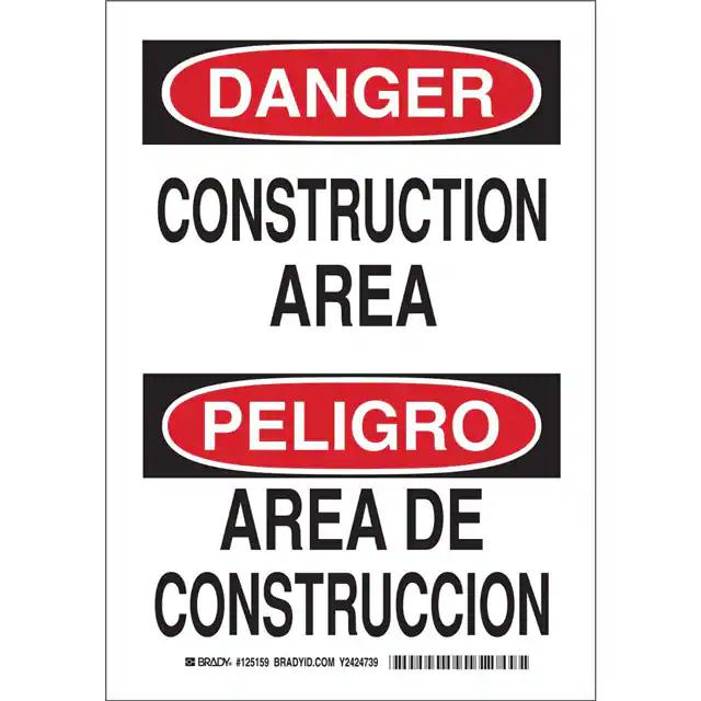 This is manufactured by Brady Corporation. The manufacturer part number is 125161. Label with a size of 14.00" l x 10.00" w (355.6mm x 254.0mm). The product is rohs3 compliant. It is assigned with possible HTSUS value of 3926.90.9985. It is shipped in bulk. It has a classic black and red legend, white background colour. The product brady®, is a highly preferred choice for users. The product is made from highly stable and reliable polyester. In addition, it is reach unaffected. Its typical moisture sensitivity level is not applicable. A bespoke label is a danger/peligro. construction area/area de construccion label. It has a long 4 weeks standard lead time. The product is designated with the ear99 code number