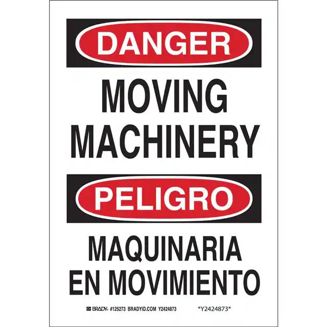 This is manufactured by Brady Corporation. The manufacturer part number is 125276. Label with a size of 14.00" l x 10.00" w (355.6mm x 254.0mm). The product is rohs3 compliant. It is assigned with possible HTSUS value of 3926.90.9985. It is shipped in bulk. It has a classic black and red legend, white background colour. The product brady®, is a highly preferred choice for users. The product is made from highly stable and reliable polyester. In addition, it is reach unaffected. Its typical moisture sensitivity level is not applicable. A bespoke label is a danger/peligro. moving machinery/maquinaria en movimiento label. It has a long 4 weeks standard lead time. The product is designated with the ear99 code number