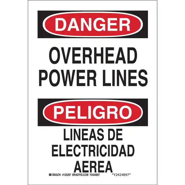 This is manufactured by Brady Corporation. The manufacturer part number is 125300. Label with a size of 14.00" l x 10.00" w (355.6mm x 254.0mm). The product is rohs3 compliant. It is assigned with possible HTSUS value of 3926.90.9985. It is shipped in bulk. It has a classic black and red legend, white background colour. The product brady®, is a highly preferred choice for users. The product is made from highly stable and reliable polyester. In addition, it is reach unaffected. Its typical moisture sensitivity level is not applicable. A bespoke label is a danger/peligro. overhead power lines/lineas de electricidad aerea label. The product is suitable for use with danger. It has a long 4 weeks standard lead time. The product is designated with the ear99 code number