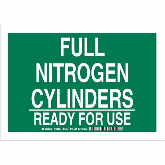 This is manufactured by Brady Corporation. The manufacturer part number is 125691. Label with a size of 10.00" l x 7.00" w (254.0mm x 177.8mm). The product is rohs3 compliant. It is assigned with possible HTSUS value of 8310.00.0000. It is shipped in bulk. It has a classic white legend, green background colour. The product brady®, is a highly preferred choice for users. The product is made from highly stable and reliable aluminum. In addition, it is reach unaffected. Its typical moisture sensitivity level is not applicable. A bespoke label is a full nitrogen cylinders ready for use label. It has a long 4 weeks standard lead time. The product is designated with the ear99 code number