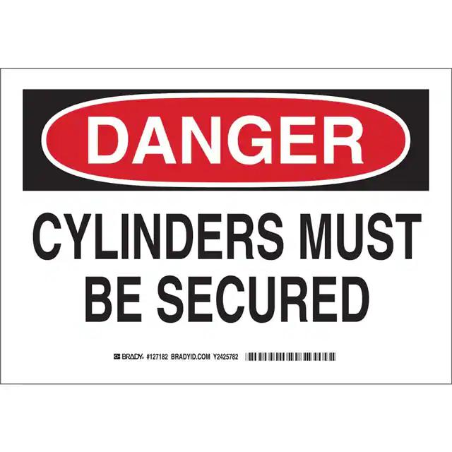 This is manufactured by Brady Corporation. The manufacturer part number is 126180. Label with a size of 10.00" l x 7.00" w (254.0mm x 177.8mm). The product is rohs3 compliant. It is assigned with possible HTSUS value of 8310.00.0000. It is shipped in bulk. It has a classic black and red legend, white background colour. The product brady®, is a highly preferred choice for users. The product is made from highly stable and reliable aluminum. In addition, it is reach unaffected. Its typical moisture sensitivity level is not applicable. A bespoke label is a danger. cylinders must be secured label. It has a long 4 weeks standard lead time. The product is designated with the ear99 code number