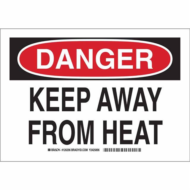 This is manufactured by Brady Corporation. The manufacturer part number is 126296. Label with a size of 10.00" l x 7.00" w (254.0mm x 177.8mm). The product is rohs3 compliant. It is assigned with possible HTSUS value of 3926.90.9985. It is shipped in bulk. It has a classic black and red legend, white background colour. The product brady®, is a highly preferred choice for users. The product is made from highly stable and reliable polyester. In addition, it is reach unaffected. Its typical moisture sensitivity level is not applicable. A bespoke label is a danger. keep away from heat label. The product is suitable for use with danger. It has a long 4 weeks standard lead time. The product is designated with the ear99 code number