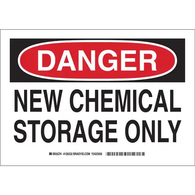This is manufactured by Brady Corporation. The manufacturer part number is 126334. Label with a size of 14.00" l x 10.00" w (355.6mm x 254.0mm). The product is rohs3 compliant. It is assigned with possible HTSUS value of 3926.90.9985. It is shipped in bulk. It has a classic black and red legend, white background colour. The product brady®, is a highly preferred choice for users. The product is made from highly stable and reliable polyester. In addition, it is reach unaffected. Its typical moisture sensitivity level is not applicable. A bespoke label is a danger. new chemical storage only label. The product is suitable for use with danger. It has a long 4 weeks standard lead time. The product is designated with the ear99 code number