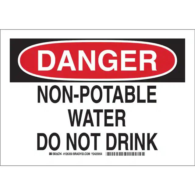 This is manufactured by Brady Corporation. The manufacturer part number is 126348. Label with a size of 10.00" l x 7.00" w (254.0mm x 177.8mm). The product is rohs3 compliant. It is assigned with possible HTSUS value of 8310.00.0000. It is shipped in bulk. It has a classic black and red legend, white background colour. The product brady®, is a highly preferred choice for users. The product is made from highly stable and reliable aluminum. In addition, it is reach unaffected. Its typical moisture sensitivity level is not applicable. A bespoke label is a danger. non-potable water do not drink label. The product is suitable for use with warning. It has a long 4 weeks standard lead time. The product is designated with the ear99 code number