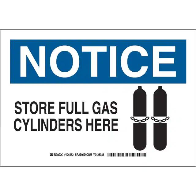 This is manufactured by Brady Corporation. The manufacturer part number is 126482. Label with a size of 10.00" l x 7.00" w (254.0mm x 177.8mm). The product is rohs3 compliant. It is assigned with possible HTSUS value of 3926.90.9985. It is shipped in bulk. It has a classic black and blue legend, white background colour. The product brady®, is a highly preferred choice for users. The product is made from highly stable and reliable polyester. In addition, it is reach unaffected. Its typical moisture sensitivity level is not applicable. A bespoke label is a notice. store full gas cylinders here label. It has a long 4 weeks standard lead time. The product is designated with the ear99 code number