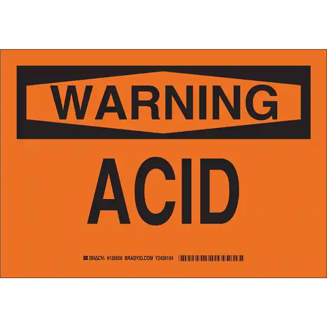 This is manufactured by Brady Corporation. The manufacturer part number is 126498. Label with a size of 10.00" l x 7.00" w (254.0mm x 177.8mm). The product is rohs3 compliant. It is assigned with possible HTSUS value of 8310.00.0000. It is shipped in bulk. It has a classic black legend, orange background colour. The product brady®, is a highly preferred choice for users. The product is made from highly stable and reliable aluminum. In addition, it is reach unaffected. Its typical moisture sensitivity level is not applicable. A bespoke label is a warning. acid label. The product is suitable for use with notice. It has a long 4 weeks standard lead time. The product is designated with the ear99 code number