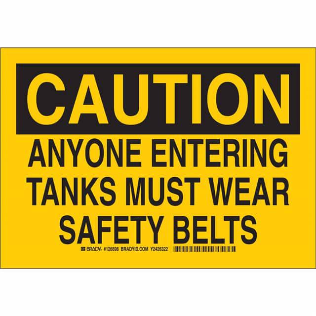 This is manufactured by Brady Corporation. The manufacturer part number is 126700. Label with a size of 14.00" l x 10.00" w (355.6mm x 254.0mm). The product is rohs3 compliant. It is assigned with possible HTSUS value of 3926.90.9985. It is shipped in bulk. It has a classic black legend, yellow background colour. The product brady®, is a highly preferred choice for users. The product is made from highly stable and reliable polyester. In addition, it is reach unaffected. Its typical moisture sensitivity level is not applicable. A bespoke label is a caution. anyone entering tanks must wear safety belts label. The product is suitable for use with safety. It has a long 4 weeks standard lead time. The product is designated with the ear99 code number