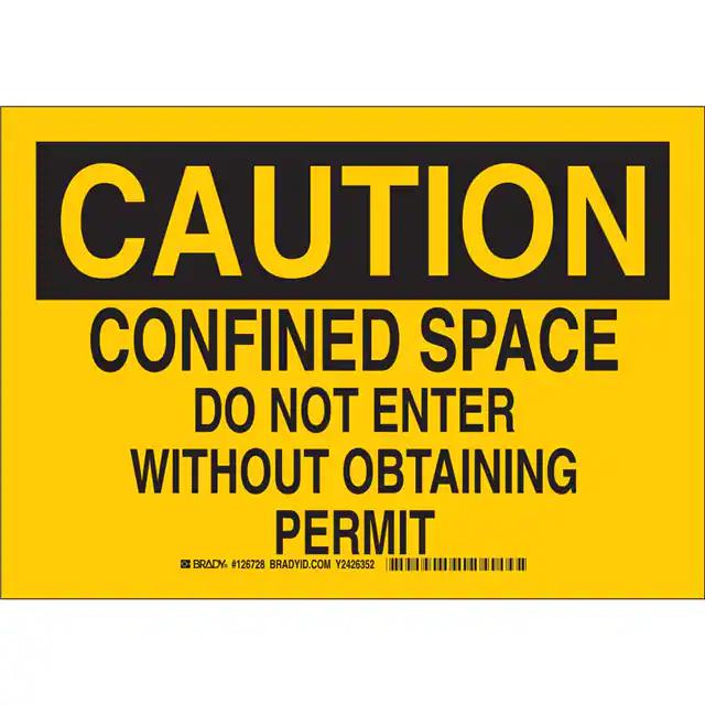This is manufactured by Brady Corporation. The manufacturer part number is 126730. Label with a size of 14.00" l x 10.00" w (355.6mm x 254.0mm). The product is rohs3 compliant. It is assigned with possible HTSUS value of 3926.90.9985. It is shipped in bulk. It has a classic black legend, yellow background colour. The product brady®, is a highly preferred choice for users. The product is made from highly stable and reliable polyester. In addition, it is reach unaffected. Its typical moisture sensitivity level is not applicable. A bespoke label is a caution. confined space do not enter without obtaining permit label. The product is suitable for use with warning. It has a long 4 weeks standard lead time. The product is designated with the ear99 code number