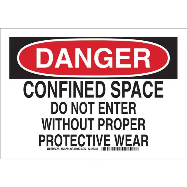 This is manufactured by Brady Corporation. The manufacturer part number is 126763. Label with a size of 10.00" l x 7.00" w (254.0mm x 177.8mm). The product is rohs3 compliant. It is assigned with possible HTSUS value of 3926.90.9985. It is shipped in bulk. It has a classic black and red legend, white background colour. The product brady®, is a highly preferred choice for users. The product is made from highly stable and reliable polyester. In addition, it is reach unaffected. Its typical moisture sensitivity level is not applicable. A bespoke label is a danger. confined space do not enter without proper protective wear label. The product is suitable for use with danger. It has a long 4 weeks standard lead time. The product is designated with the ear99 code number