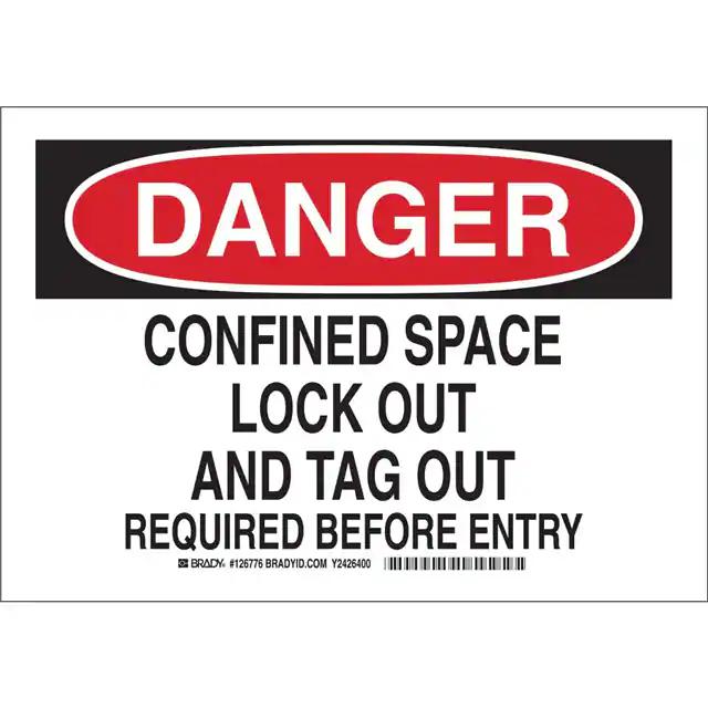 This is manufactured by Brady Corporation. The manufacturer part number is 126778. Label with a size of 14.00" l x 10.00" w (355.6mm x 254.0mm). The product is rohs3 compliant. It is assigned with possible HTSUS value of 3926.90.9985. It is shipped in bulk. It has a classic black and red legend, white background colour. The product brady®, is a highly preferred choice for users. The product is made from highly stable and reliable polyester. In addition, it is reach unaffected. Its typical moisture sensitivity level is not applicable. A bespoke label is a danger. confined space lock out and tag out required before entry label. It has a long 4 weeks standard lead time. The product is designated with the ear99 code number