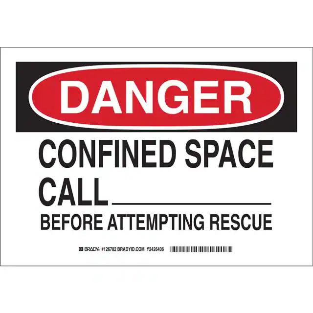 This is manufactured by Brady Corporation. The manufacturer part number is 126782. Label with a size of 10.00" l x 7.00" w (254.0mm x 177.8mm). The product is rohs3 compliant. It is assigned with possible HTSUS value of 3926.90.9985. It is shipped in bulk. It has a classic black and red legend, white background colour. The product brady®, is a highly preferred choice for users. The product is made from highly stable and reliable polyester. In addition, it is reach unaffected. Its typical moisture sensitivity level is not applicable. A bespoke label is a danger. confined space call before attempting rescue label. It has a long 4 weeks standard lead time. The product is designated with the ear99 code number