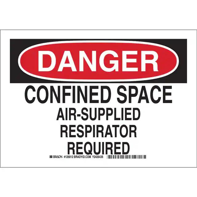 This is manufactured by Brady Corporation. The manufacturer part number is 126810. Label with a size of 10.00" l x 7.00" w (254.0mm x 177.8mm). The product is rohs3 compliant. It is assigned with possible HTSUS value of 8310.00.0000. It is shipped in bulk. It has a classic black and red legend, white background colour. The product brady®, is a highly preferred choice for users. The product is made from highly stable and reliable aluminum. In addition, it is reach unaffected. Its typical moisture sensitivity level is not applicable. A bespoke label is a danger. confined space air-supplied respirator required label. The product is suitable for use with danger. It has a long 4 weeks standard lead time. The product is designated with the ear99 code number