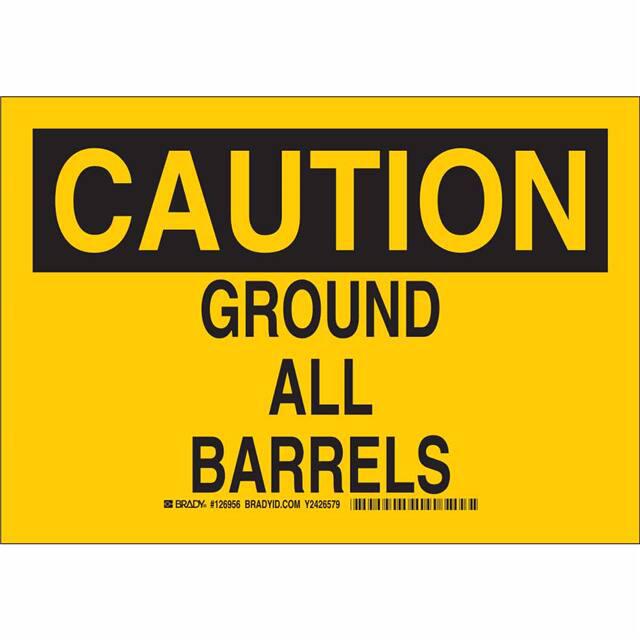 This is manufactured by Brady Corporation. The manufacturer part number is 126954. Label with a size of 10.00" l x 7.00" w (254.0mm x 177.8mm). The product is not applicable. It is assigned with possible HTSUS value of 8310.00.0000. It is shipped in bulk. It has a classic black legend, yellow background colour. The product brady®, is a highly preferred choice for users. The product is made from highly stable and reliable aluminum. In addition, it is reach affected. Its typical moisture sensitivity level is not applicable. A bespoke label is a caution. ground all barrels label. The product is suitable for use with caution. It has a long 4 weeks standard lead time. The product is designated with the ear99 code number
