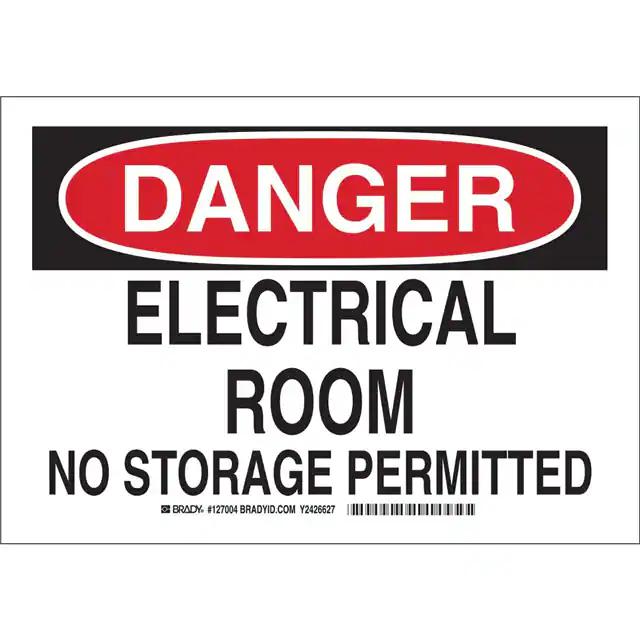 This is manufactured by Brady Corporation. The manufacturer part number is 127006. Label with a size of 14.00" l x 10.00" w (355.6mm x 254.0mm). The product is rohs3 compliant. It is assigned with possible HTSUS value of 3926.90.9985. It is shipped in bulk. It has a classic black and red legend, white background colour. The product brady®, is a highly preferred choice for users. The product is made from highly stable and reliable polyester. In addition, it is reach unaffected. Its typical moisture sensitivity level is not applicable. A bespoke label is a danger. electrical room no storage permitted label. The product is suitable for use with danger. It has a long 4 weeks standard lead time. The product is designated with the ear99 code number