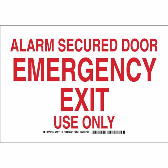 This is manufactured by Brady Corporation. The manufacturer part number is 127120. Label with a size of 14.00" l x 10.00" w (355.6mm x 254.0mm). The product is rohs3 compliant. It is assigned with possible HTSUS value of 3926.90.9985. It is shipped in bulk. It has a classic red legend, white background colour. The product brady®, is a highly preferred choice for users. The product is made from highly stable and reliable polyester. In addition, it is reach unaffected. Its typical moisture sensitivity level is not applicable. A bespoke label is a alarm secured door emergency exit use only label. The product is suitable for use with emergency. It has a long 4 weeks standard lead time. The product is designated with the ear99 code number