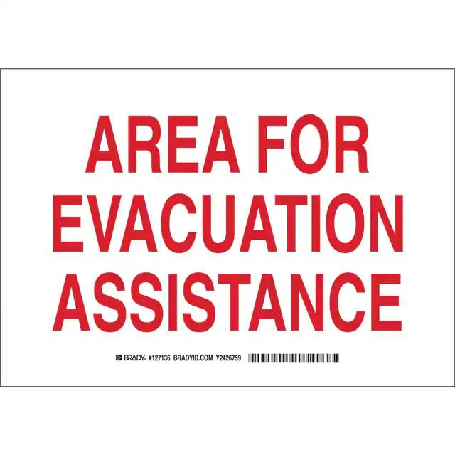 This is manufactured by Brady Corporation. The manufacturer part number is 127136. Label with a size of 10.00" l x 7.00" w (254.0mm x 177.8mm). The product is rohs3 compliant. It is assigned with possible HTSUS value of 3926.90.9985. It is shipped in bulk. It has a classic red legend, white background colour. The product brady®, is a highly preferred choice for users. The product is made from highly stable and reliable polyester. In addition, it is reach unaffected. Its typical moisture sensitivity level is not applicable. A bespoke label is a area for evacuation assistance label. The product is suitable for use with warning. It has a long 4 weeks standard lead time. The product is designated with the ear99 code number