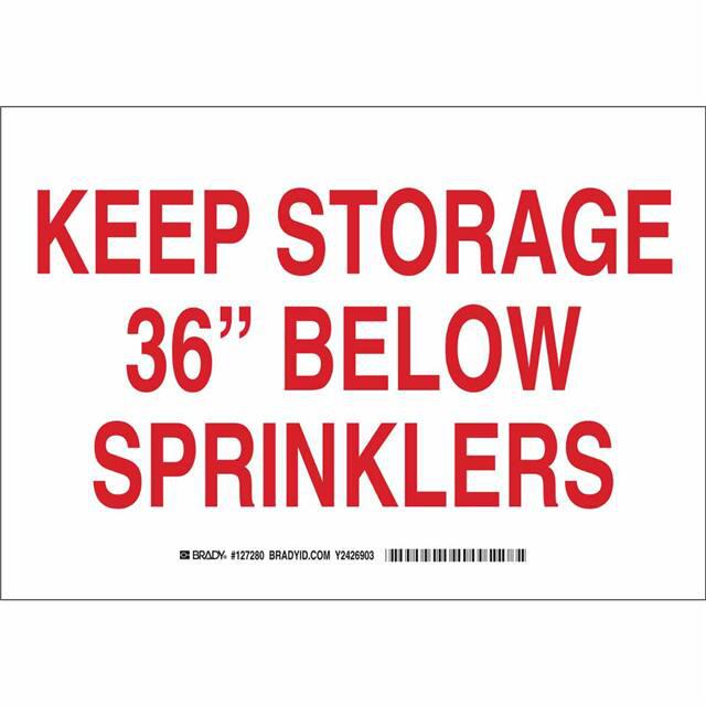 This is manufactured by Brady Corporation. The manufacturer part number is 127280. Label with a size of 10.00" l x 7.00" w (254.0mm x 177.8mm). The product is rohs3 compliant. It is assigned with possible HTSUS value of 3926.90.9985. It is shipped in bulk. It has a classic red legend, white background colour. The product brady®, is a highly preferred choice for users. The product is made from highly stable and reliable polyester. In addition, it is reach unaffected. Its typical moisture sensitivity level is not applicable. A bespoke label is a keep storage 36" below sprinklers label. It has a long 4 weeks standard lead time. The product is designated with the ear99 code number