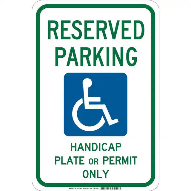 This is manufactured by Brady Corporation. The manufacturer part number is 127459. Label with a size of 18.00" l x 12.00" w (457.2mm x 304.8mm). The product is rohs3 compliant. It is assigned with possible HTSUS value of 3926.90.9985. It is shipped in bulk. It has a classic blue and green legend, white background colour. The product brady®, is a highly preferred choice for users. The product is made from highly stable and reliable polyester. In addition, it is reach unaffected. Its typical moisture sensitivity level is not applicable. A bespoke label is a reserved parking. handicap plate or permit only label. It has a long 4 weeks standard lead time. The product is designated with the ear99 code number