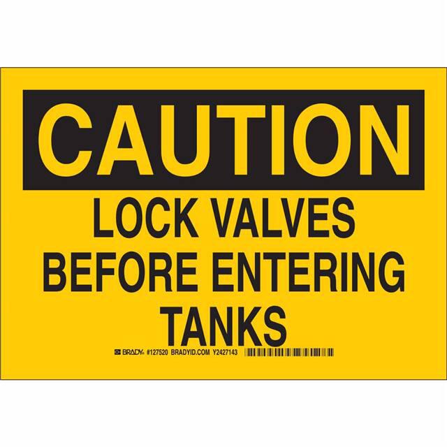 This is manufactured by Brady Corporation. The manufacturer part number is 127519. Label with a size of 10.00" l x 7.00" w (254.0mm x 177.8mm). The product is rohs3 compliant. It is assigned with possible HTSUS value of 3926.90.9985. It is shipped in bulk. It has a classic black legend, yellow background colour. The product brady®, is a highly preferred choice for users. The product is made from highly stable and reliable polyester. In addition, it is reach unaffected. Its typical moisture sensitivity level is not applicable. A bespoke label is a caution. lock valves before entering tanks label. It has a long 4 weeks standard lead time. The product is designated with the ear99 code number
