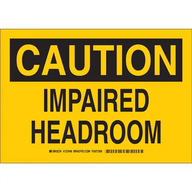 This is manufactured by Brady Corporation. The manufacturer part number is 127645. Label with a size of 10.00" l x 7.00" w (254.0mm x 177.8mm). The product is rohs3 compliant. It is assigned with possible HTSUS value of 3926.90.9985. It is shipped in bulk. It has a classic black legend, yellow background colour. The product brady®, is a highly preferred choice for users. The product is made from highly stable and reliable polyester. In addition, it is reach unaffected. Its typical moisture sensitivity level is not applicable. A bespoke label is a caution. impaired headroom label. The product is suitable for use with caution. It has a long 4 weeks standard lead time. The product is designated with the ear99 code number