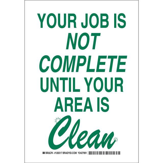 This is manufactured by Brady Corporation. The manufacturer part number is 128316. Label with a size of 10.00" l x 7.00" w (254.0mm x 177.8mm). The product is rohs3 compliant. It is assigned with possible HTSUS value of 8310.00.0000. It is shipped in bulk. It has a classic green legend, white background colour. The product brady®, is a highly preferred choice for users. The product is made from highly stable and reliable aluminum. In addition, it is reach unaffected. Its typical moisture sensitivity level is not applicable. A bespoke label is a your job is not complete until your area is clean label. It has a long 4 weeks standard lead time. The product is designated with the ear99 code number