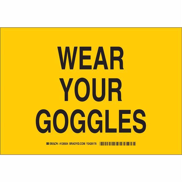 This is manufactured by Brady Corporation. The manufacturer part number is 128503. Label with a size of 10.00" l x 7.00" w (254.0mm x 177.8mm). The product is rohs3 compliant. It is assigned with possible HTSUS value of 3926.90.9985. It is shipped in bulk. It has a classic black legend, yellow background colour. The product brady®, is a highly preferred choice for users. The product is made from highly stable and reliable polyester. In addition, it is reach unaffected. Its typical moisture sensitivity level is not applicable. A bespoke label is a wear your goggles label. The product is suitable for use with warning. It has a long 4 weeks standard lead time. The product is designated with the ear99 code number