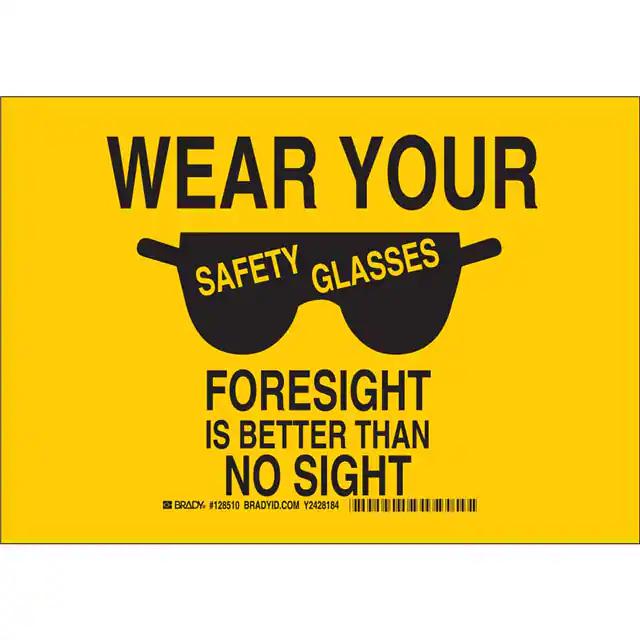 This is manufactured by Brady Corporation. The manufacturer part number is 128510. Label with a size of 10.00" l x 7.00" w (254.0mm x 177.8mm). The product is rohs3 compliant. It is assigned with possible HTSUS value of 3926.90.9985. It is shipped in bulk. It has a classic black legend, yellow background colour. The product brady®, is a highly preferred choice for users. The product is made from highly stable and reliable polyester. In addition, it is reach unaffected. Its typical moisture sensitivity level is not applicable. A bespoke label is a wear your safety glasses foresight is better than no sight label. The product is suitable for use with safety. It has a long 4 weeks standard lead time. The product is designated with the ear99 code number