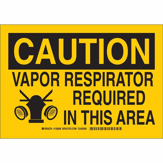 This is manufactured by Brady Corporation. The manufacturer part number is 128604. Label with a size of 10.00" l x 7.00" w (254.0mm x 177.8mm). The product is not applicable. It is assigned with possible HTSUS value of 8310.00.0000. It is shipped in bulk. It has a classic black legend, yellow background colour. The product brady®, is a highly preferred choice for users. The product is made from highly stable and reliable aluminum. In addition, it is reach affected. Its typical moisture sensitivity level is not applicable. A bespoke label is a caution. vapor respirator required in this area label. It has a long 4 weeks standard lead time. The product is designated with the ear99 code number