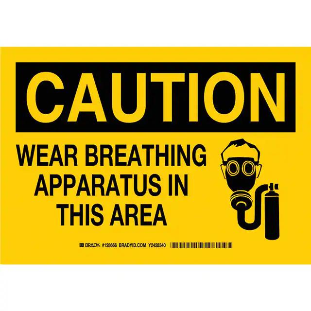 This is manufactured by Brady Corporation. The manufacturer part number is 128665. Label with a size of 10.00" l x 7.00" w (254.0mm x 177.8mm). The product is rohs3 compliant. It is assigned with possible HTSUS value of 3926.90.9985. It is shipped in bulk. It has a classic black legend, yellow background colour. The product brady®, is a highly preferred choice for users. The product is made from highly stable and reliable polyester. In addition, it is reach unaffected. Its typical moisture sensitivity level is not applicable. A bespoke label is a wear breathing apparatus in this area label. The product is suitable for use with warning. It has a long 4 weeks standard lead time. The product is designated with the ear99 code number