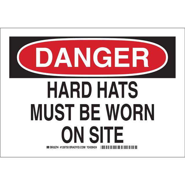 This is manufactured by Brady Corporation. The manufacturer part number is 128748. Label with a size of 10.00" l x 7.00" w (254.0mm x 177.8mm). The product is rohs3 compliant. It is assigned with possible HTSUS value of 8310.00.0000. It is shipped in bulk. It has a classic black and red legend, white background colour. The product brady®, is a highly preferred choice for users. The product is made from highly stable and reliable aluminum. In addition, it is reach unaffected. Its typical moisture sensitivity level is not applicable. A bespoke label is a danger. hard hats must be worn on site label. The product is suitable for use with danger. It has a long 4 weeks standard lead time. The product is designated with the ear99 code number