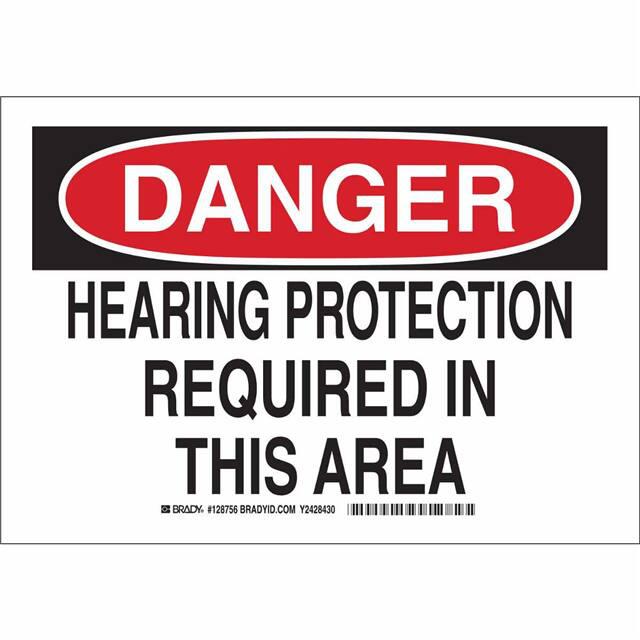 This is manufactured by Brady Corporation. The manufacturer part number is 128755. Label with a size of 10.00" l x 7.00" w (254.0mm x 177.8mm). The product is rohs3 compliant. It is assigned with possible HTSUS value of 3926.90.9985. It is shipped in bulk. It has a classic black and red legend, white background colour. The product brady®, is a highly preferred choice for users. The product is made from highly stable and reliable polyester. In addition, it is reach unaffected. Its typical moisture sensitivity level is not applicable. A bespoke label is a danger. hearing protection required in this area label. The product is suitable for use with warning. It has a long 4 weeks standard lead time. The product is designated with the ear99 code number