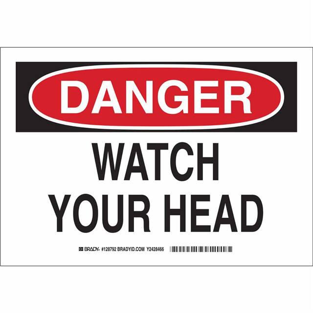 This is manufactured by Brady Corporation. The manufacturer part number is 128790. Label with a size of 10.00" l x 7.00" w (254.0mm x 177.8mm). The product is rohs3 compliant. It is assigned with possible HTSUS value of 8310.00.0000. It is shipped in bulk. It has a classic black and red legend, white background colour. The product brady®, is a highly preferred choice for users. The product is made from highly stable and reliable aluminum. In addition, it is reach unaffected. Its typical moisture sensitivity level is not applicable. A bespoke label is a danger. watch your head label. The product is suitable for use with danger. It has a long 4 weeks standard lead time. The product is designated with the ear99 code number