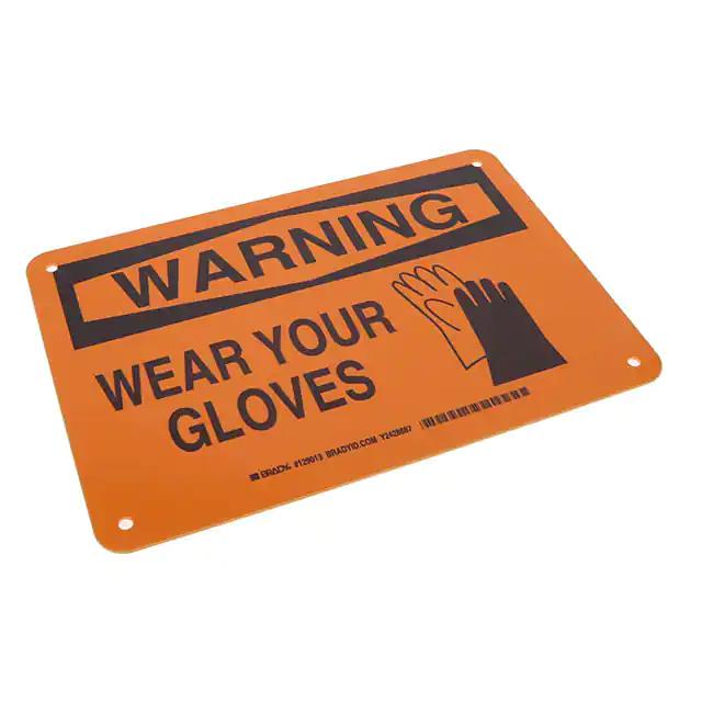 This is manufactured by Brady Corporation. The manufacturer part number is 129013. Label with a size of 10.00" l x 7.00" w (254.0mm x 177.8mm). The product is rohs3 compliant. It is assigned with possible HTSUS value of 3926.90.9985. It is shipped in bulk. It has a classic black legend, orange background colour. The product brady®, is a highly preferred choice for users. The product is made from highly stable and reliable polyester. In addition, it is reach unaffected. Its typical moisture sensitivity level is not applicable. A bespoke label is a warning. wear your gloves label. The product is suitable for use with warning. It has a long 4 weeks standard lead time. The product is designated with the ear99 code number