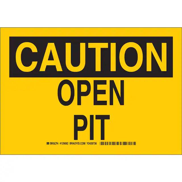 This is manufactured by Brady Corporation. The manufacturer part number is 129061. Label with a size of 10.00" l x 7.00" w (254.0mm x 177.8mm). The product is rohs3 compliant. It is assigned with possible HTSUS value of 3926.90.9985. It is shipped in bulk. It has a classic black legend, yellow background colour. The product brady®, is a highly preferred choice for users. The product is made from highly stable and reliable polyester. In addition, it is reach unaffected. Its typical moisture sensitivity level is not applicable. A bespoke label is a caution. open pit label. It has a long 4 weeks standard lead time. The product is designated with the ear99 code number