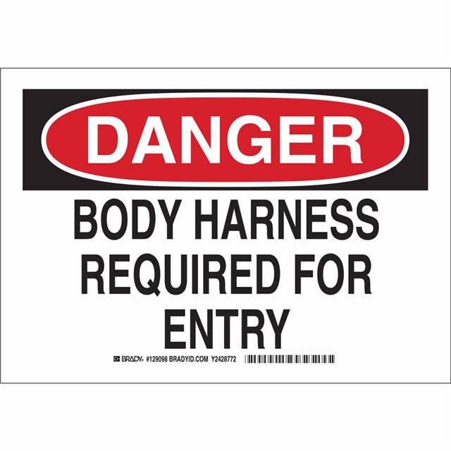 This is manufactured by Brady Corporation. The manufacturer part number is 129097. Label with a size of 10.00" l x 7.00" w (254.0mm x 177.8mm). The product is rohs3 compliant. It is assigned with possible HTSUS value of 3926.90.9985. It is shipped in bulk. It has a classic black and red legend, white background colour. The product brady®, is a highly preferred choice for users. The product is made from highly stable and reliable polyester. In addition, it is reach unaffected. Its typical moisture sensitivity level is not applicable. A bespoke label is a danger. body harness required for entry label. It has a long 4 weeks standard lead time. The product is designated with the ear99 code number