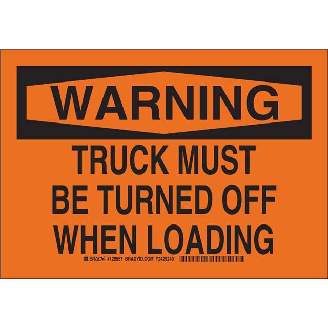 This is manufactured by Brady Corporation. The manufacturer part number is 129556. Label with a size of 10.00" l x 7.00" w (254.0mm x 177.8mm). The product is rohs3 compliant. It is assigned with possible HTSUS value of 3926.90.9985. It is shipped in bulk. It has a classic black legend, orange background colour. The product brady®, is a highly preferred choice for users. The product is made from highly stable and reliable polyester. In addition, it is reach unaffected. Its typical moisture sensitivity level is not applicable. A bespoke label is a warning. truck must be turned off when loading label. The product is suitable for use with warning. It has a long 4 weeks standard lead time. The product is designated with the ear99 code number