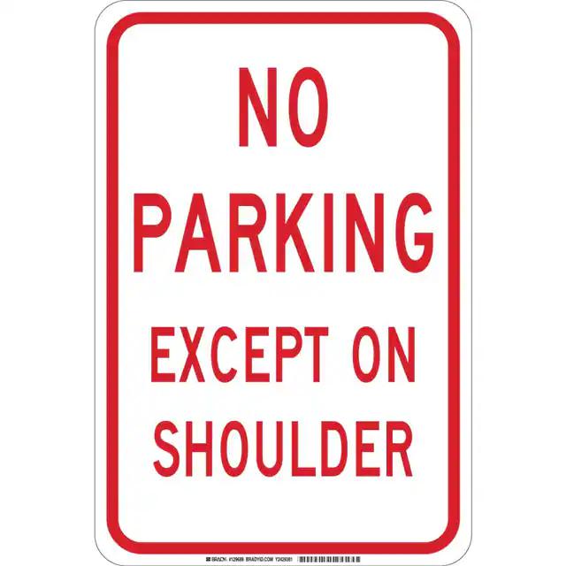 This is manufactured by Brady Corporation. The manufacturer part number is 129689. Label with a size of 18.00" l x 12.00" w (457.2mm x 304.8mm). The product is not applicable. It is assigned with possible HTSUS value of 3926.90.9985. It is shipped in bulk. It has a classic red legend, white background colour. The product brady®, is a highly preferred choice for users. The product is made from highly stable and reliable polyester. In addition, it is reach unaffected. Its typical moisture sensitivity level is not applicable. A bespoke label is a no parking except on shoulder label. It has a long 4 weeks standard lead time. The product is designated with the ear99 code number