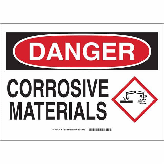 This is manufactured by Brady Corporation. The manufacturer part number is 131813. Label with a size of 10.00" l x 7.00" w (254.0mm x 177.8mm). The product is rohs3 compliant. It is assigned with possible HTSUS value of 3926.90.9985. It is shipped in bulk. It has a classic black and red legend, white background colour. The product brady®, is a highly preferred choice for users. The product is made from highly stable and reliable polyester. In addition, it is reach unaffected. Its typical moisture sensitivity level is not applicable. A bespoke label is a danger. corrosive materials label. The product is suitable for use with warning. It has a long 4 weeks standard lead time. The product is designated with the ear99 code number