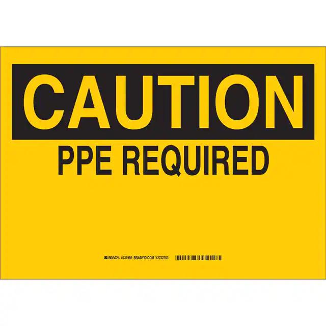 This is manufactured by Brady Corporation. The manufacturer part number is 131988. Label with a size of 14.00" l x 10.00" w (355.6mm x 254.0mm). The product is rohs3 compliant. It is assigned with possible HTSUS value of 3926.90.9985. It is shipped in bulk. It has a classic black legend, yellow background colour. The product brady®, is a highly preferred choice for users. The product is made from highly stable and reliable polyester. In addition, it is reach unaffected. Its typical moisture sensitivity level is not applicable. A bespoke label is a caution. ppe required label. The product is suitable for use with warning. It has a long 4 weeks standard lead time. The product is designated with the ear99 code number