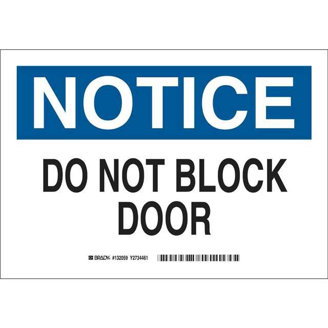 This is manufactured by Brady Corporation. The manufacturer part number is 132059. Label with a size of 10.00" l x 7.00" w (254.0mm x 177.8mm). The product is rohs3 compliant. It is assigned with possible HTSUS value of 3926.90.9985. It is shipped in bulk. It has a classic black and blue legend, white background colour. The product brady®, is a highly preferred choice for users. The product is made from highly stable and reliable polyester. In addition, it is reach unaffected. Its typical moisture sensitivity level is not applicable. A bespoke label is a notice. do not block door label. The product is suitable for use with warning. It has a long 4 weeks standard lead time. The product is designated with the ear99 code number