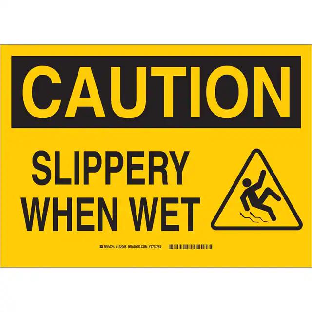 This is manufactured by Brady Corporation. The manufacturer part number is 132062. Label with a size of 10.00" l x 7.00" w (254.0mm x 177.8mm). The product is rohs3 compliant. It is assigned with possible HTSUS value of 3926.90.9985. It is shipped in bulk. It has a classic black legend, yellow background colour. The product brady®, is a highly preferred choice for users. The product is made from highly stable and reliable polyester. In addition, it is reach unaffected. Its typical moisture sensitivity level is not applicable. A bespoke label is a caution. slippery when wet label. The product is suitable for use with warning. It has a long 4 weeks standard lead time. The product is designated with the ear99 code number