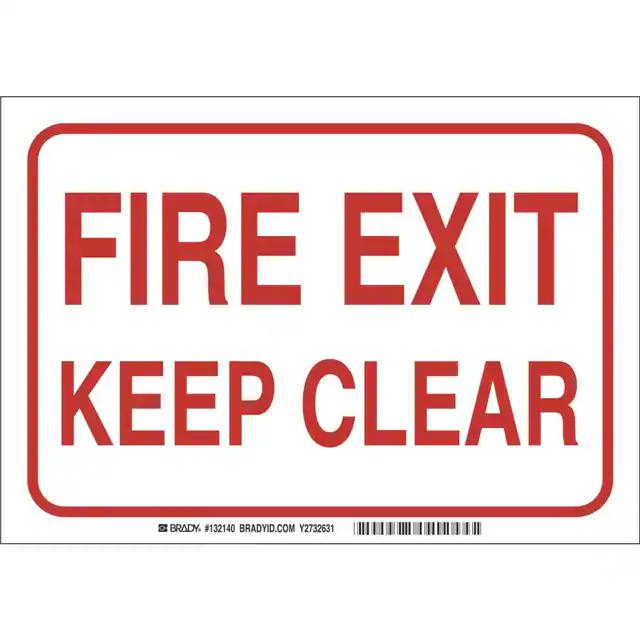 This is manufactured by Brady Corporation. The manufacturer part number is 132138. Label with a size of 10.00" l x 7.00" w (254.0mm x 177.8mm). The product is rohs3 compliant. It is assigned with possible HTSUS value of 8310.00.0000. It is shipped in bulk. It has a classic red legend, white background colour. The product brady®, is a highly preferred choice for users. The product is made from highly stable and reliable aluminum. In addition, it is reach unaffected. Its typical moisture sensitivity level is not applicable. A bespoke label is a fire exit keep clear label. The product is suitable for use with fire. It has a long 4 weeks standard lead time. The product is designated with the ear99 code number